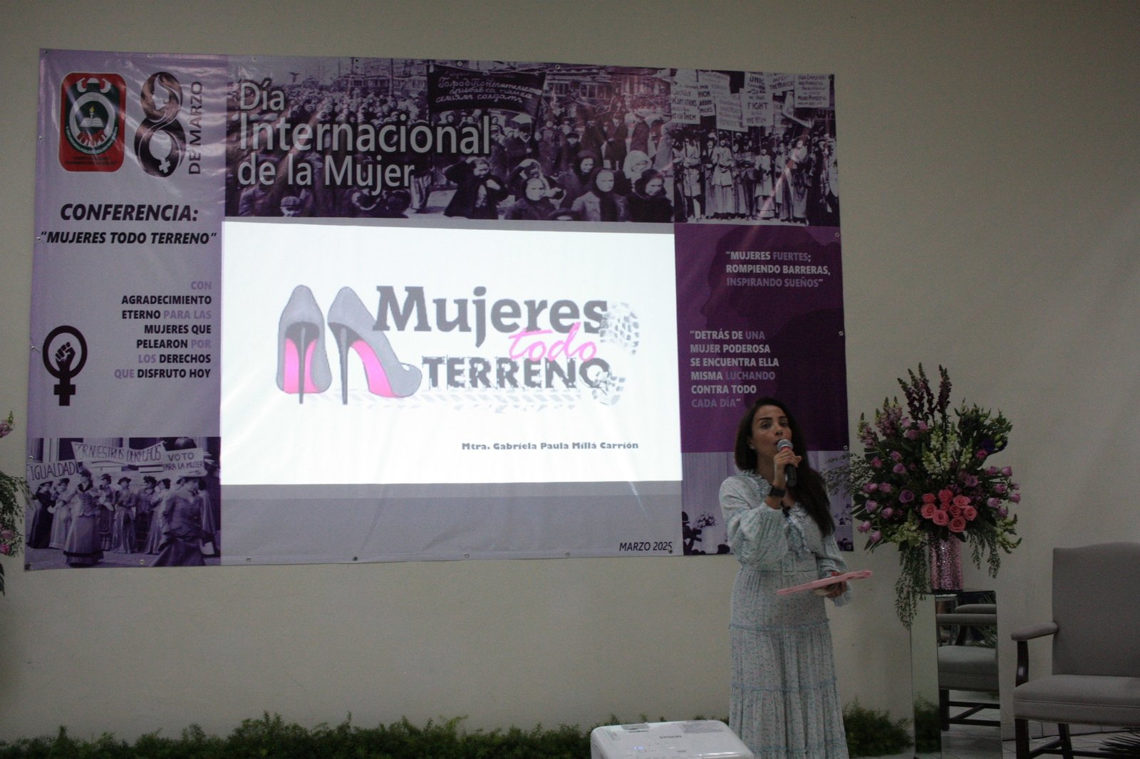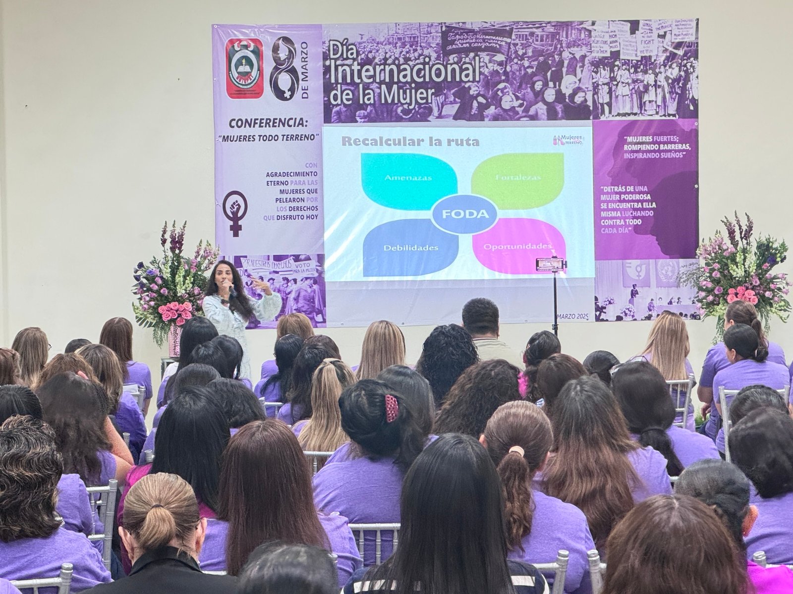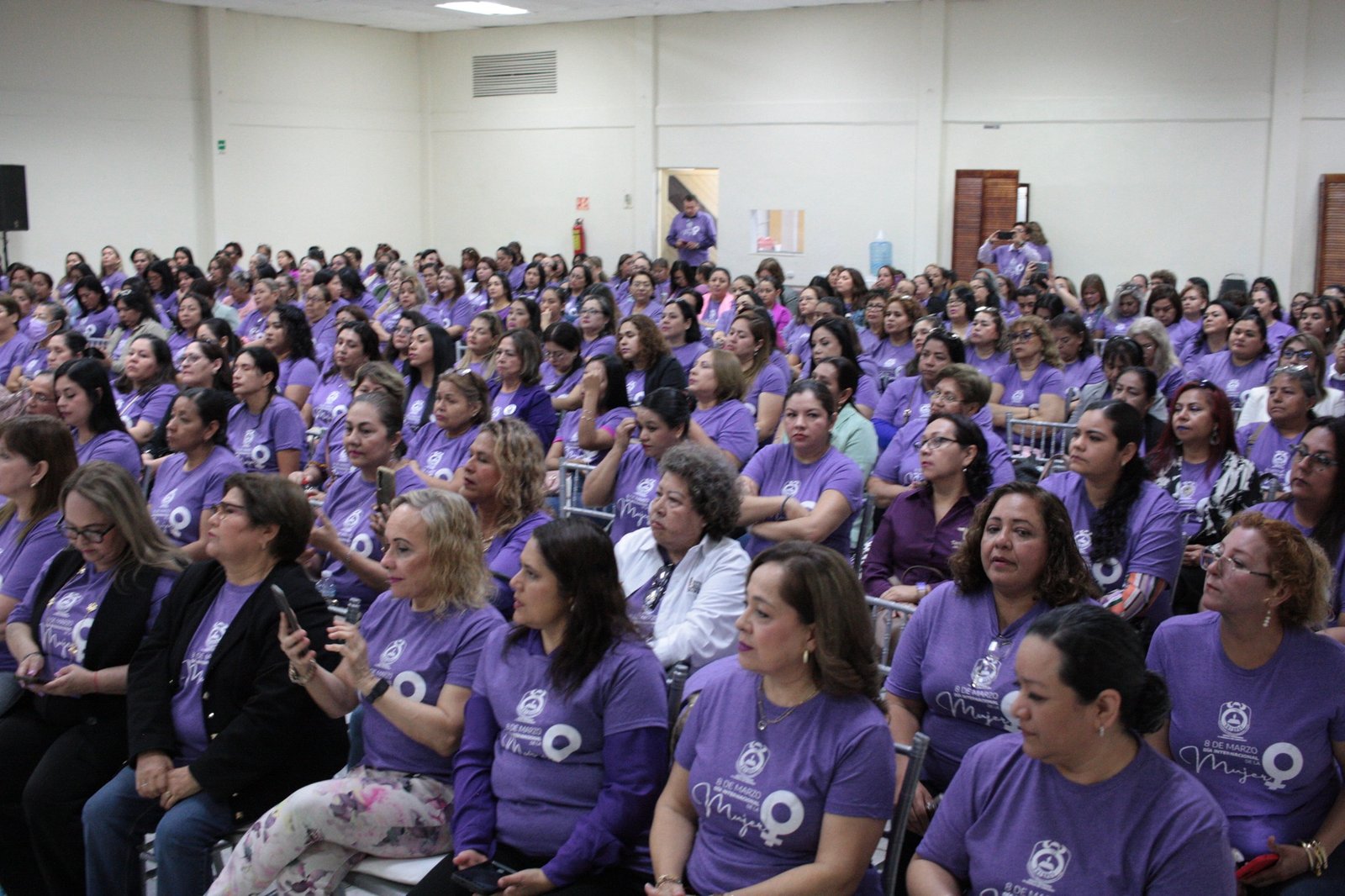 Atentas, reflexivas y emocionadas cientos de mujeres Servidoras Públicas pertenecientes al SUTSPET escucharon con atención la Conferencia Magistral «Mujeres Todo Terreno» que impartió la Mtra. Gabriela Milla Carrión, como parte de la Conmemoración del «Día Internacional de la Mujer»