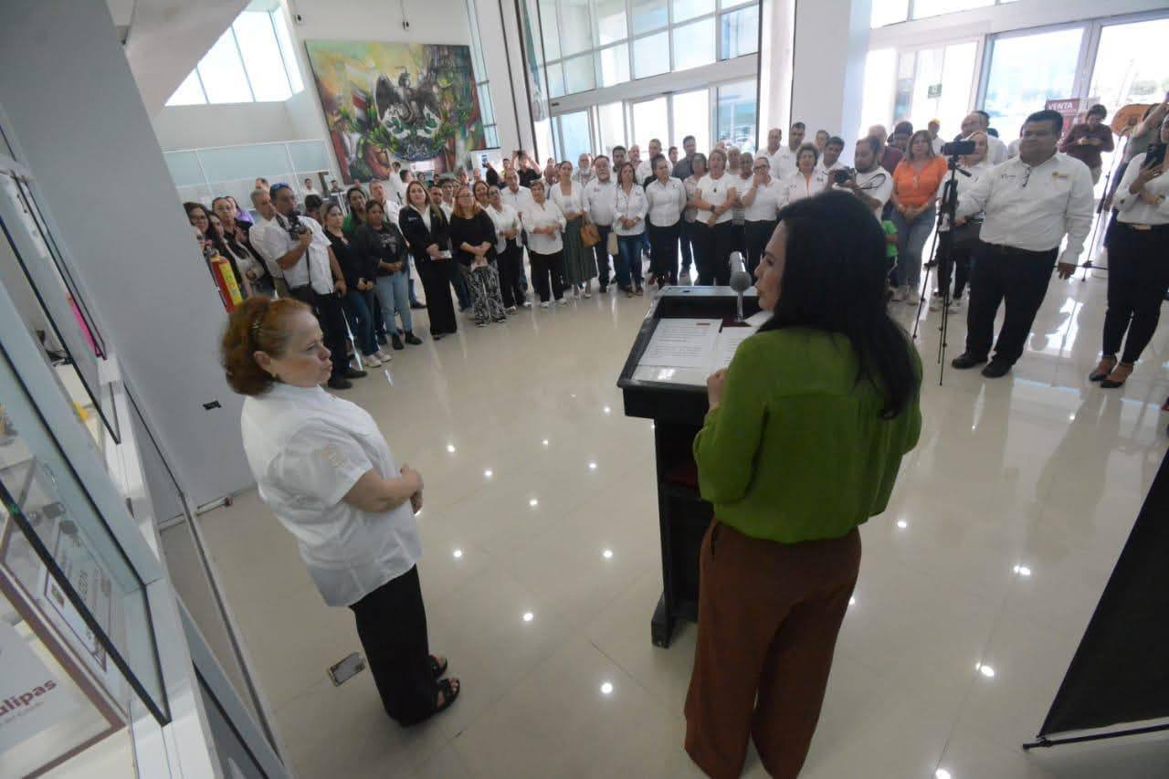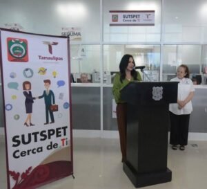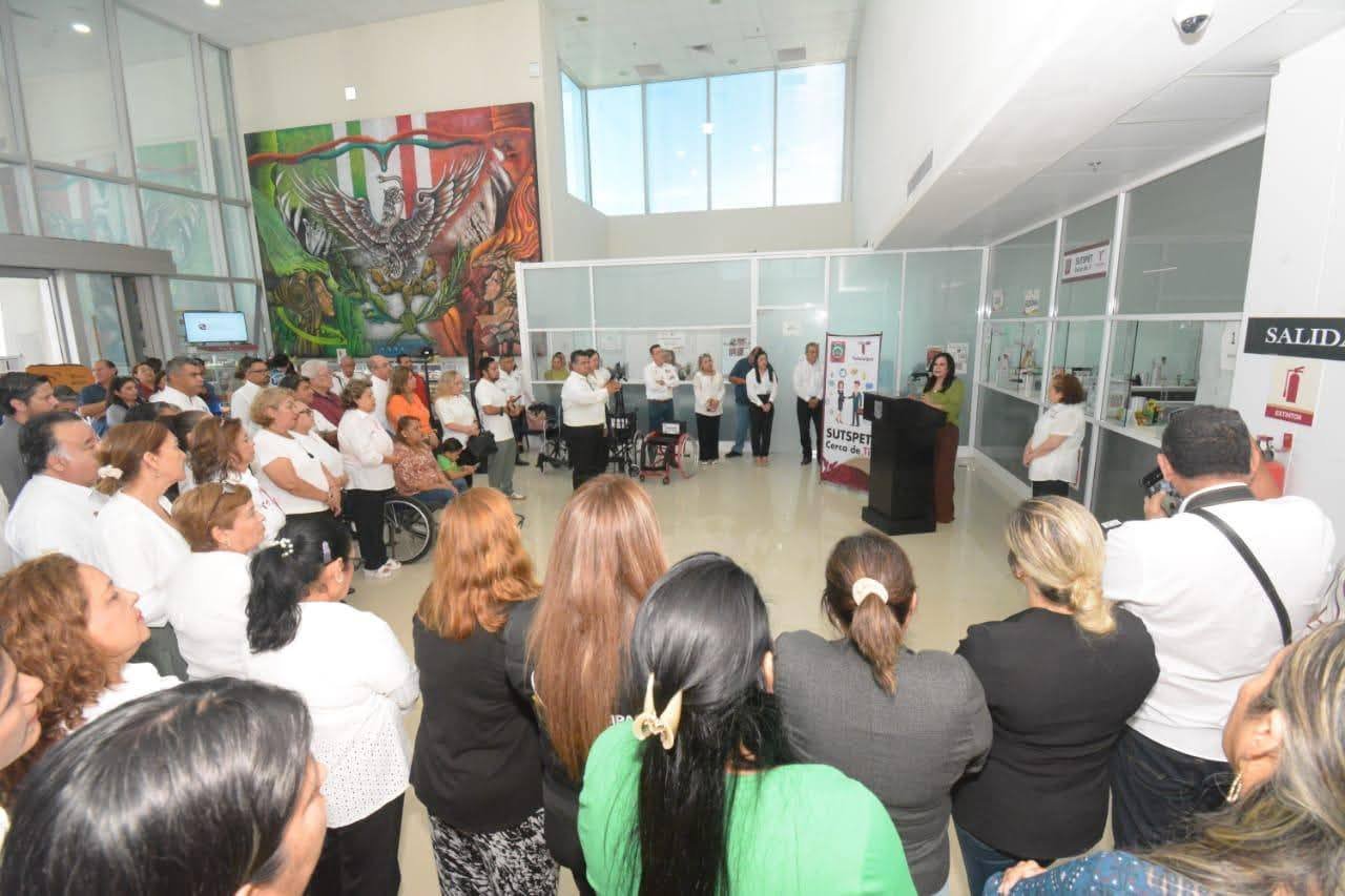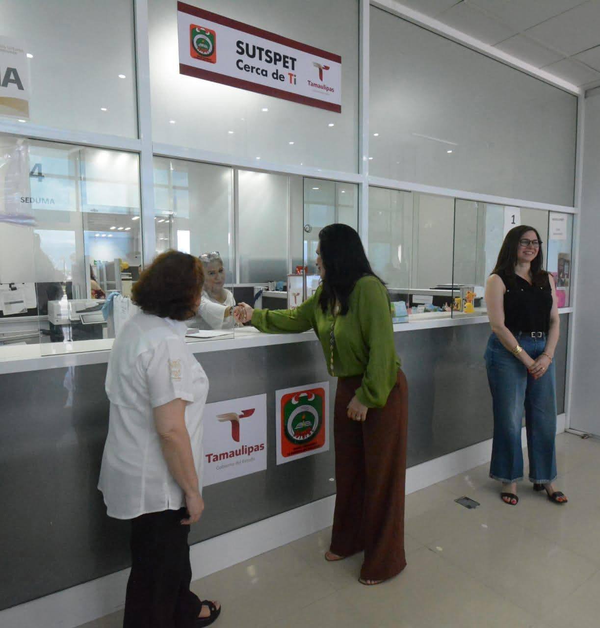 En representación del Gobernador del Estado Américo Villarreal Anaya, la C.P. Luisa Eugenia Manautou Galván, titular de la Secretaría de Administración del Estado de Tamaulipas, acompañada por la Lic. Blanca Guadalupe Valles Rodríguez, Secretaria General del SUTSPET y la Lic. Laura Olivia Villarreal Castillo, Directora General de Recursos Humanos de la Secretaria de Administración, llevaron a cabo la inauguración del módulo permanente denominado SUTSPET «Cerca de Ti» en la Torre Gubernamental del Parque Bicentenario.