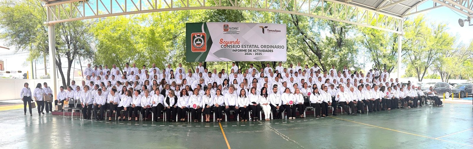 Antes los aplausos de los asistentes, la Secretaria General mencionó «Si algo quiero resaltar después de tantos años, es la lucha por los derechos laborales, no se detiene, ni tienen caducidad, los derechos laborales no conocen partidos porque son universales, además «dijo son esenciales para que una sociedad prospere con justicia y dignidad» concluyó. Al finalizar este Segundo Consejo Estatal Ordinario se llevó a cabo en las canchas del SUTSPET la foto panorámica de más de 200 asistentes a este evento.
