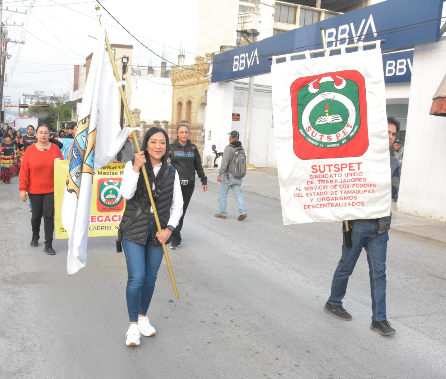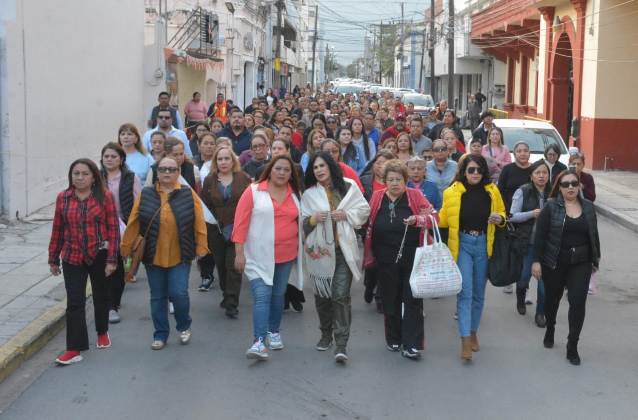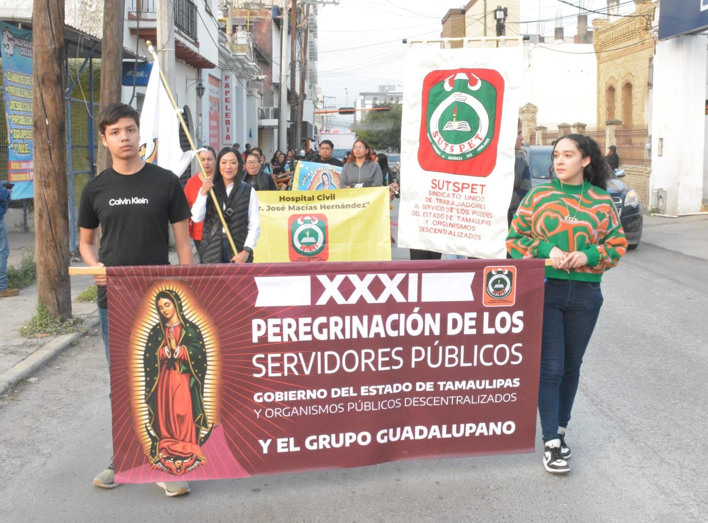 La peregrinación recorrió las calles de Ciudad Victoria, desde Palacio de Gobierno hasta el Santuario de la Virgen de Guadalupe, y fue coordinada por la Maestra Claudia Valles Olvera, Secretaria de Cultura del SUTSPET.