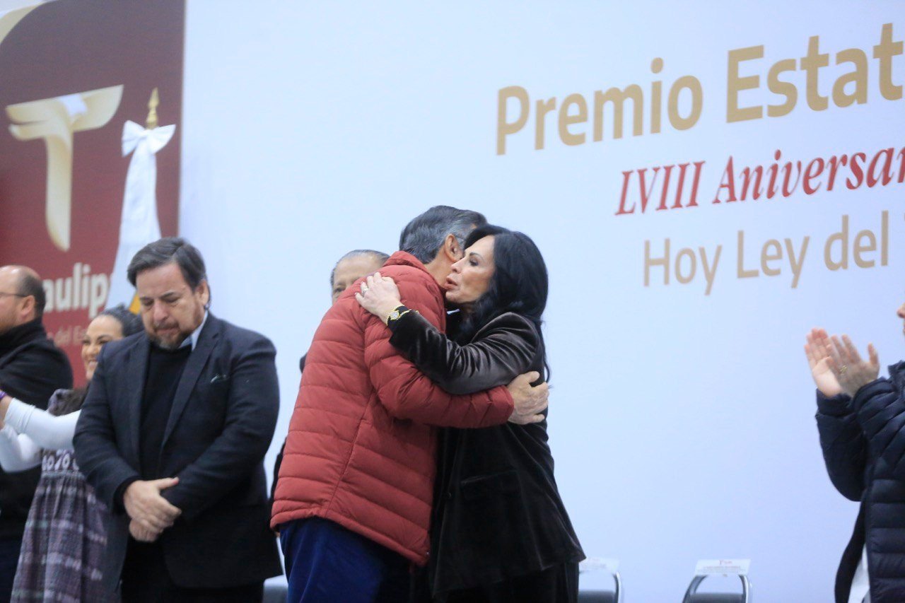 Durante el evento, el gobernador Villarreal Anaya felicitó a los premiados por su compromiso y dedicación al servicio público. Junto a él estuvo la secretaria general del Sindicato Unido de Trabajadores al Servicio de los Poderes del Estado de Tamaulipas (SUTSPET), Lic. Blanca Guadalupe Valles Rodríguez.